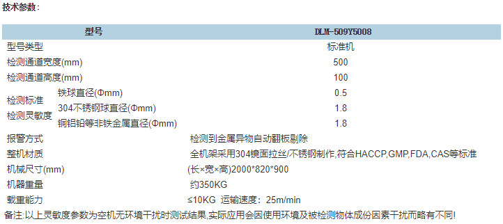 4.具有产品效应自动学习功能,自动学习三次即可获得最佳使用参数。如含糖的产品、含盐份的食品,如:肉制品等,都会对金属检测仪产生类似金属的信号,这种效应会影响检测效果,此功可自动削减产品效应,达到最佳效果。